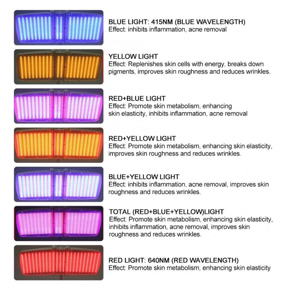 Studies show that light enters the body as photons (energy) and is absorbed by the photoreceptors within cells. These beauty care units are used to treat soft tissue injuries and skin conditions such as psoriasis, herpes, leg ulcers, burns, and acne. The spectrum of light is especially effective for treating wounds, cuts, acupressure points or other areas close to the surface of the skin. It balances skin tone and enhances circulation, inhibiting the formation of melanin pigment, fighting acne and dermatitis, and smoothing pockmarks, scars and wrinkles.
