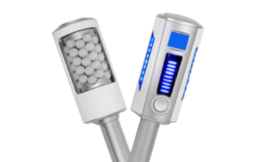The machine incorporates LED red and blue light therapy. The LED lights emit specific wavelengths of red and blue light.