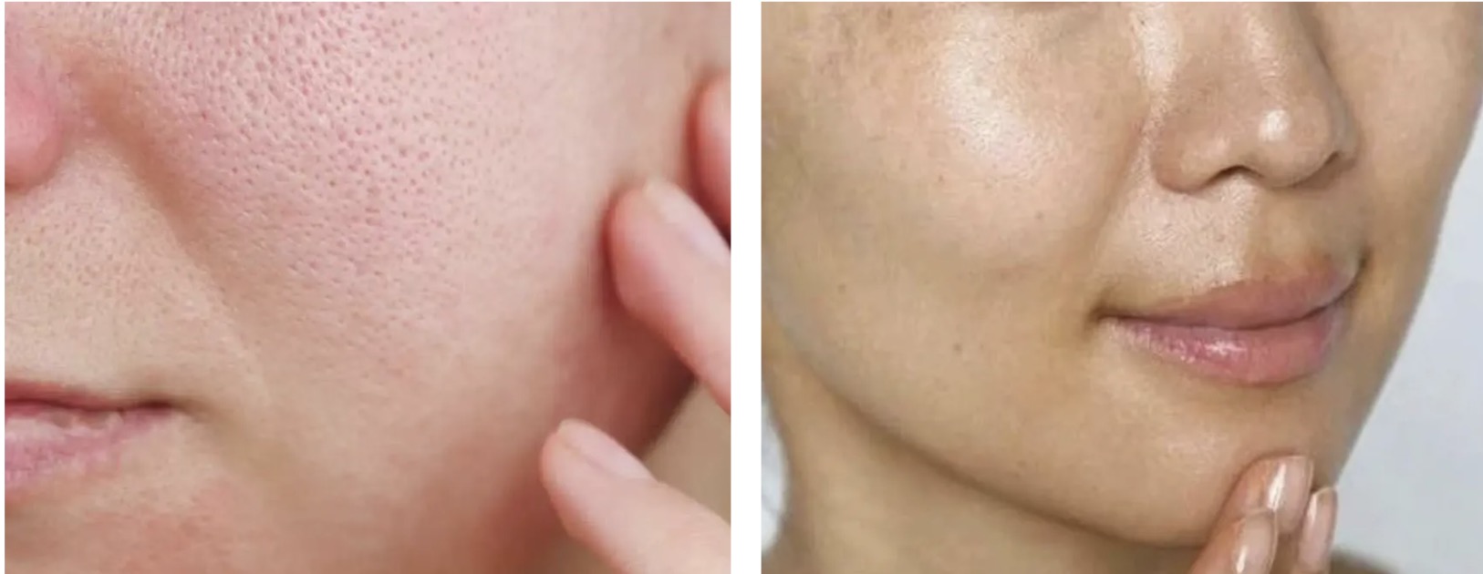 Golden RF Microneedle heats the entire layer of the dermis, stimulates the growth of collagen fibers, strengthens the structure around pores, and reduces the diameter of pores. And radio frequency current acts on sebaceous glands, directly destroying sebaceous gland cells and causing sebaceous gland atrophy, thereby achieving the effect of oil control. Due to reduced oil production, the blackhead like appearance caused by oil accumulation and oxidation has also been improved, and the pores appear cleaner.