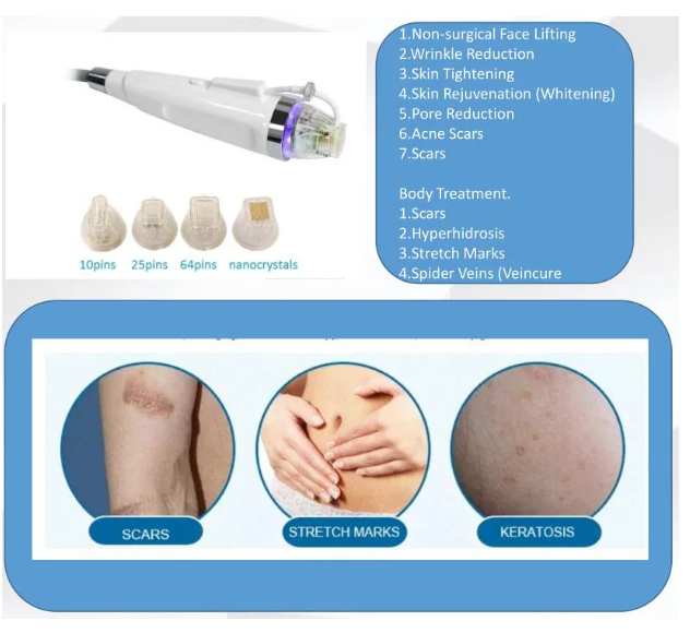 Fractional Micro Needle RF system is a ideal technology for skin rejuvenation by applying preciously controlled RF energy directly into a certain depth of dermis with minimally invasive micro needles Such an ideal combination of micro needling plus RF energy reduces treatment time and recovery time significantly differentiating from fractional laser based treatment.